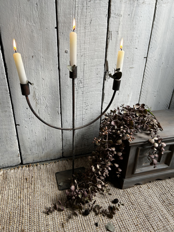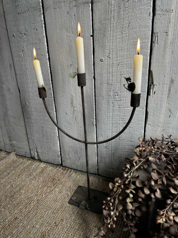 Sfeervole ijzeren 3- arms kandelaar dinerkaars